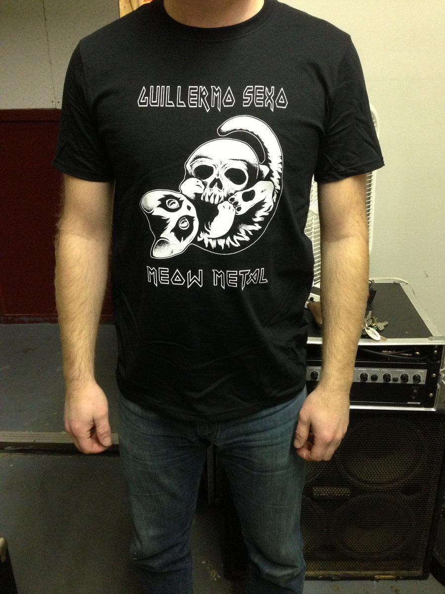 "Cat with Skull"- Meow Metal T-shirt. available in S, M, L, XL, Ladies small, Ladies Medium, Ladies Large.